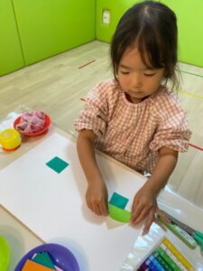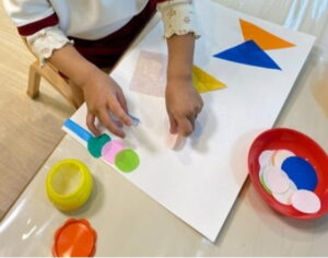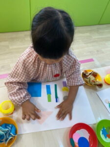 ・指でのりを付ける活動を通して、指先の感覚や巧緻性を育てる。