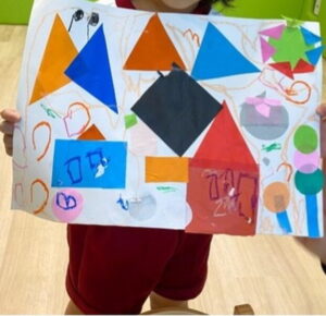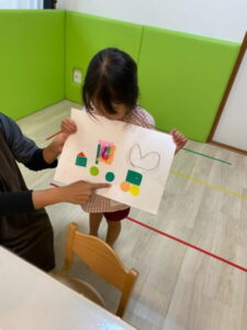 ・○△▢の形に親しみ、組み合わせて構成する楽しさを味わう。