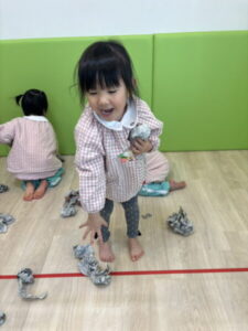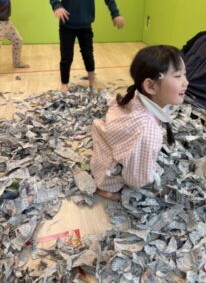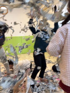 新聞紙を使って、楽しく遊びました。