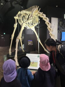 アルバム お知らせ アルバム お知らせ 博物館へレッツゴー! 2026年2月18日 みんなで博物館へ出かけました。 「どんな発見があるかな~」とわくわくしながらな元気よく出発した子どもたち。 キリンの首の骨は7本あるんだって‼ 興味深々に数えてみました。 ウミガメのはく製を見ながら観察タイム。 「お口はここにあるね‼」 じっくり観察中。 何が見えるかな? 新しい発見がいっぱいです‼ 「鳥さんの足ってこんな形‼」 足形の上を歩いてみたよ‼ みんなでたくさん見て、触って、学んだ博物館見学。 とても楽しい体験になりました。