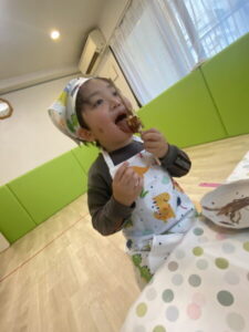 ほっぺにチョコをつけながら、おいしそうに食べました。