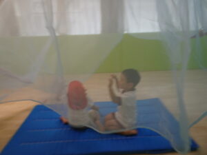 に合わせてバスタオルでハンモックをしたり